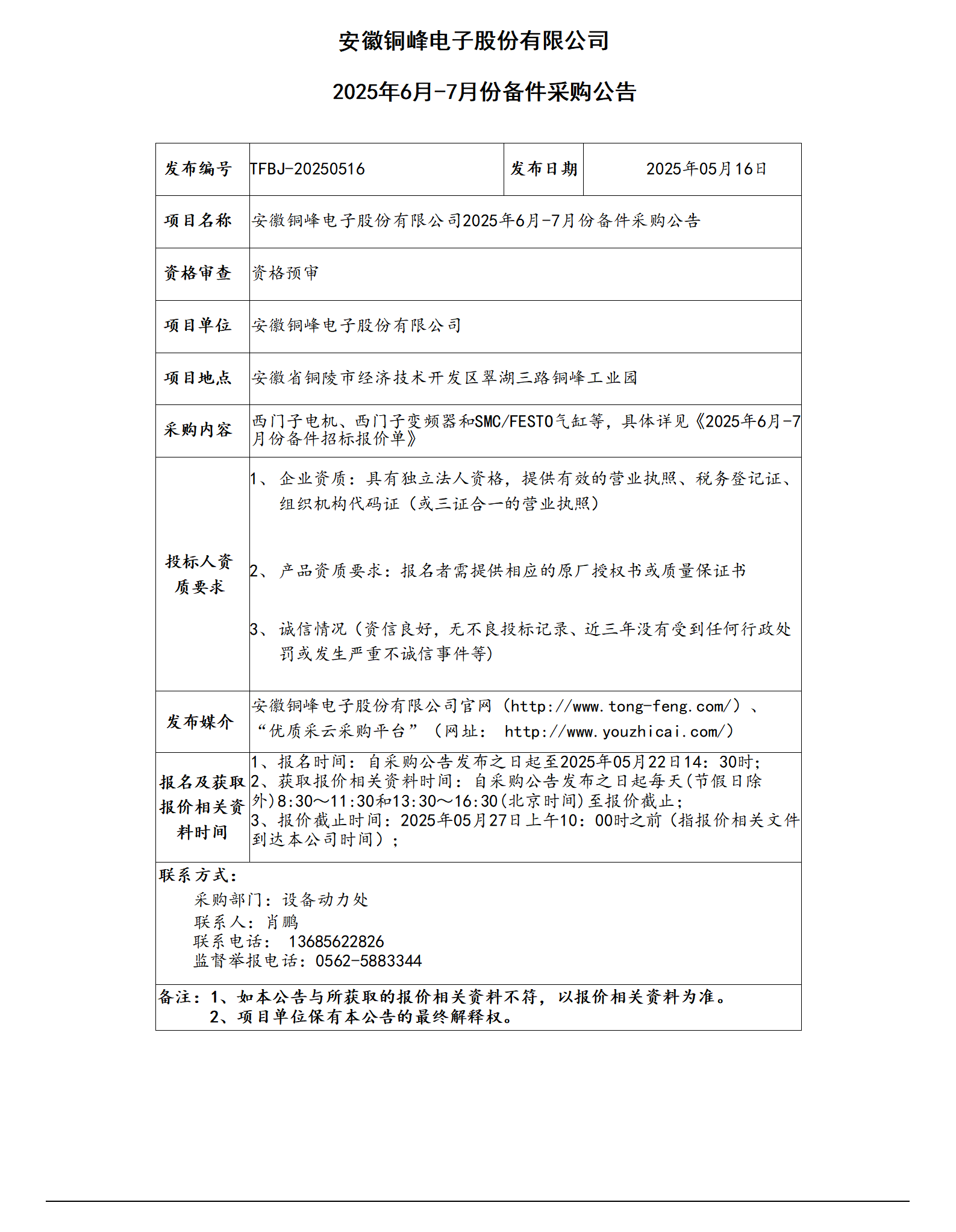 安徽銅峰電子股份有限公司 (備件公告)_01